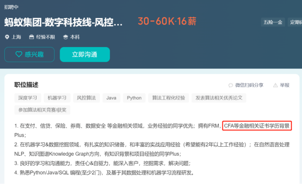 此外,基于考取CFA需要消耗大量的时间与精力,那么通过CFA考试的人才通常被认为具有比较清晰的职业规划和专注领域,相较于其他人更容易有突出表现。