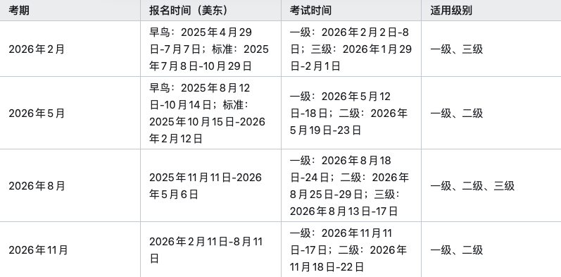 - 2026年2月考期:已截止(2025年4月29日-5月19日);