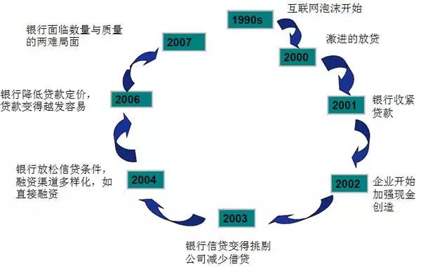 放一个近些年信贷周期的图例来说明(1990-2007危机前):