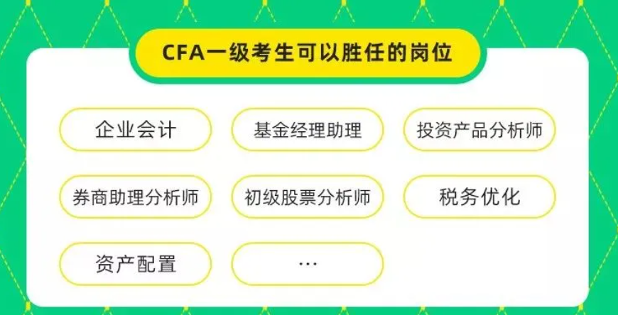 CFA一级可以胜任的岗位包括投资产品分析师、初级股票分析师、基金经理助理、企业会计等。CFA一级的重要价值点在于系统金融知识框架,对在校生和转行者尤其重要。