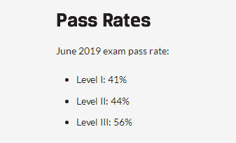 2019年CFA一二三级通过率出炉,41%、44%和56%