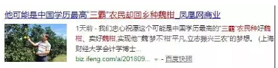 近日,分析君在网上看到下面这篇有趣的新闻,写了一位高学历“三霸”魏刚,原任职国企高管,现辞职转当果农种植“魏柑”的事迹...