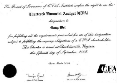 不仅如此,“证霸”之名,魏刚也是坐的实实的。除了CPA、ACCA、HKCPA证书外,金融领域最有含金量的证书CFA,魏刚也已收入麾下。从这些证书上看,魏刚在会计领域和金融领域都有着深厚的知识储备。对于创业之人来说,相当于手握两大神器,“战斗力”大幅升级!