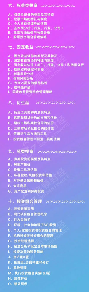 下面,学姐结合CFA协会的课程知识,总结了关于CFA的知识体系框架。