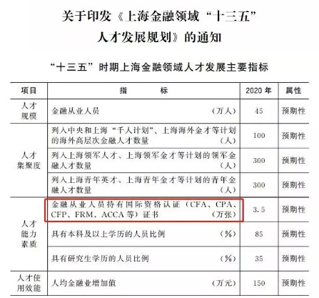 根据《上海金融领域“十三五”人才发展规划》,“十三五”时期金融人才发展将聚焦几大任务(节选):