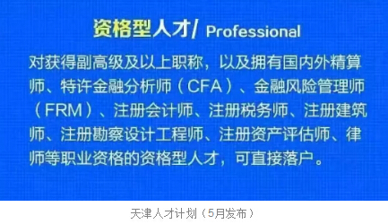 拥有国内外精算师、CFA、FRM、注册会计师、注册税务师、注册资产评估师等职业资格的资格型人才,可直接落户!