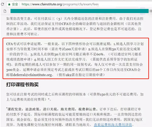 一位考生发布一张截图,说发现了CFA延考政策也悄悄滴发生了更新。从协会网站截图,我们发现,以下4种情形,协会是可以批准考生支付300美金申请延考的。
