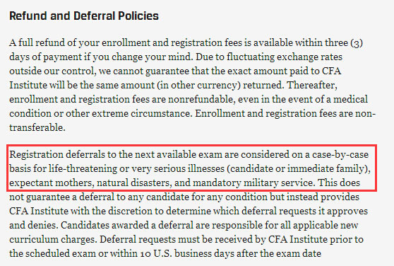 CFA退款和延期政策(译文)