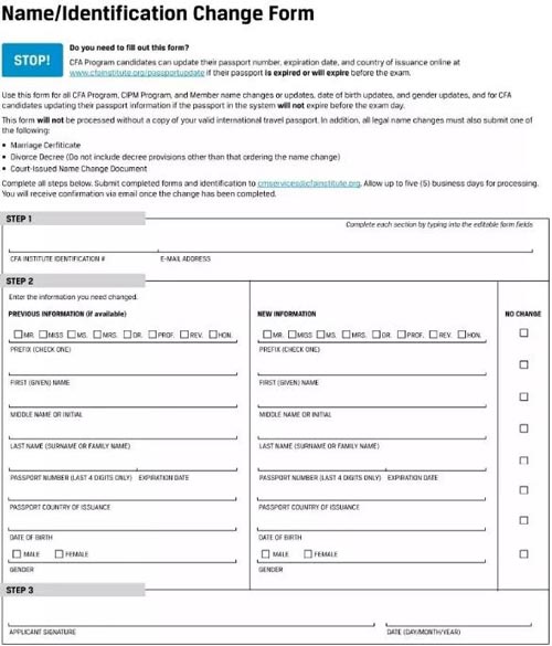 邮件标题:CFA Institute Identification ***,Name/ Identification change application