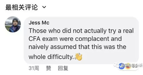 不过很快,在评论区就有人进行了反驳:那些没真正考过CFA的正在沾沾自喜,天真地以为这就是全部的难度。