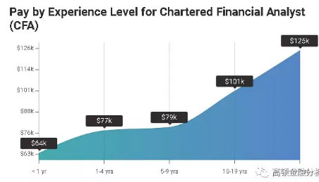 根据美国权威职业网站Pay Scale公布的数据来看,经验不足1年的入门级金融特许分析师预计将获得基的平均薪酬(包括小费、奖金和加班费)为63871美元,而拥有1-4年工作经验之后平均薪酬为77276美元。