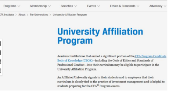 一些对CFA专业度非常认可的国内高校,需要认证才可以开办CFA方向的实验班或专业,因此会有在CFA协会申请认证,并在通过后开设相关课程或专业。