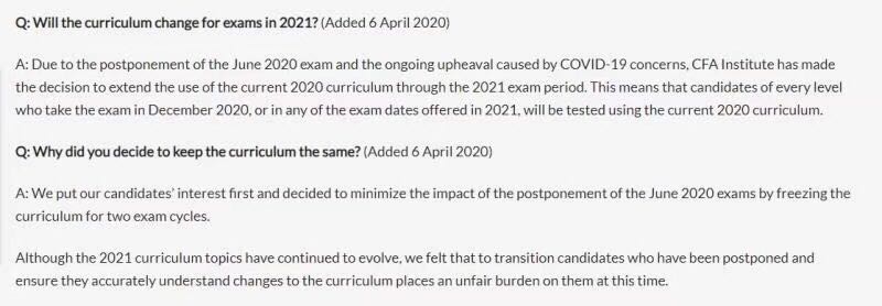 问:2021年的CFA考试课程(考纲)会改变吗? (新增2020年4月6日)