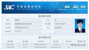 2016年,陈显顺正式入职国泰君安,从事策略研究,2020年9月,成为策略研究首席分析师。也就是说,短短4年时间,陈显顺便成功跳过了“分析师(研究助理)——高级分析师——资深分析师——首席分析师”的一般职业路径,实现了职业生涯的高起跳。