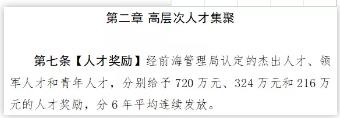 在高层次人才方面,经前海管理局认定的杰出人才、领军人才和青年人才,分别给予720万元、324万元和216万元的人才奖励,分6年平均连续发放。