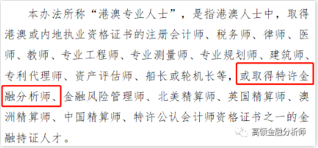 也就是说,持有CFA资格的港澳专业人士一次性可获得5万元的奖励。如果你是CFA+FRM双证的,最高可拿到8万元。