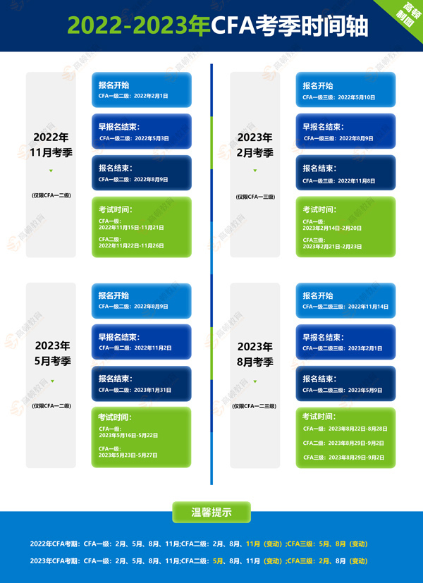 2024年共有两个CFA三级考试窗口:2月和8月。特别提醒:两次CFA三级考试报名须间隔至少6个月。尽早报名,还可以享受报名的早鸟价格优惠。