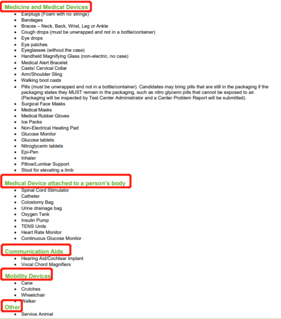 5、考生必须使用的药品、器材等(如耳塞、口罩、眼药水等)