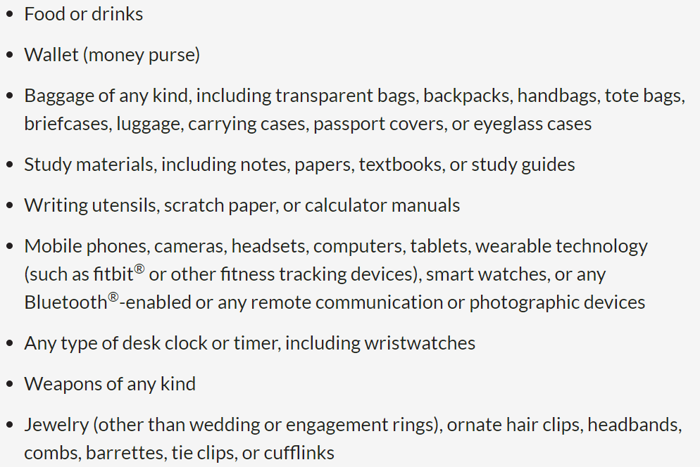 CFA考场允许携带的物品,但是在不使用时需要摆放在个人桌面上: