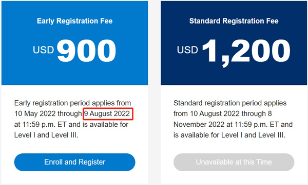 每一级别考试的早鸟报名价:由900美元上调至940美元