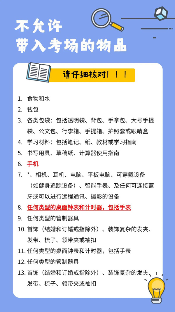 2.因为需要提早到考点,可以带复习材料在等候的时候再看看吗?