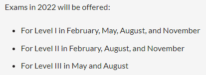 CFA二级考试:2022年2月、8月和11月三个考季提供