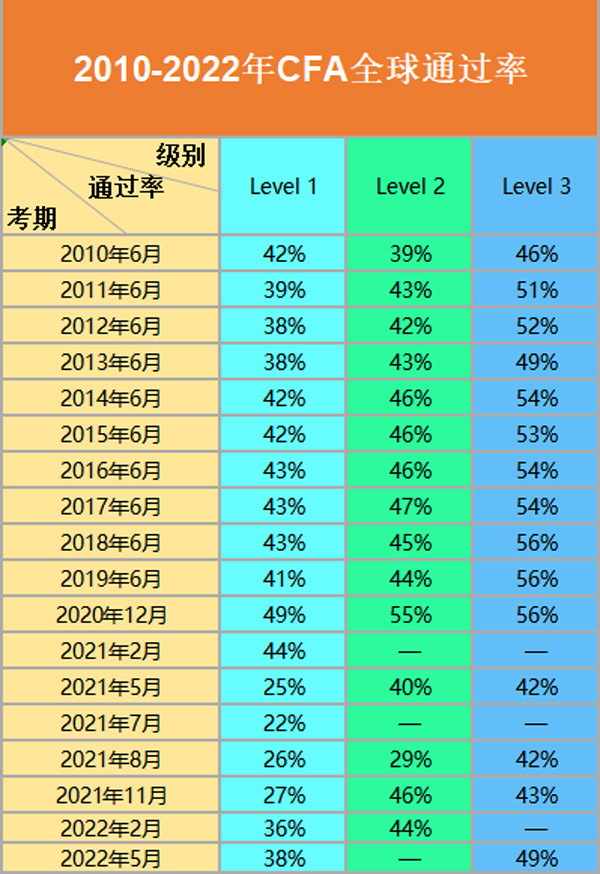 2022年8月CFA二级考试全球考生通过率为40%!其实二级考试通过率基本都维持在40%-50%之间。可以说CFA二级的通过率未来可能大概率会维持这个水平,继续在40%左右的水平摇摆。有很多小伙伴心里难免担心,以前几乎2个人就能过1个,现在大概3个人中才会有1个可以通过。现在的这个情况自己还要不要选择继续考二级?