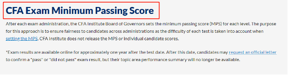 即便每一次CFA考试的难度可能略有差别,CFA协会会使用标准设定的流程,它保证了考试标准有连续性、稳定性和一致性。MPS不是个人决定,不要求大家全部答对,而是根据“集体”来决定MPS评分标准的,简单而言就是看大家普遍的分数而进行调整。协会也不要求大家每个科目都优秀,而是考虑整体分数,整体分超过MPS也可以通过!