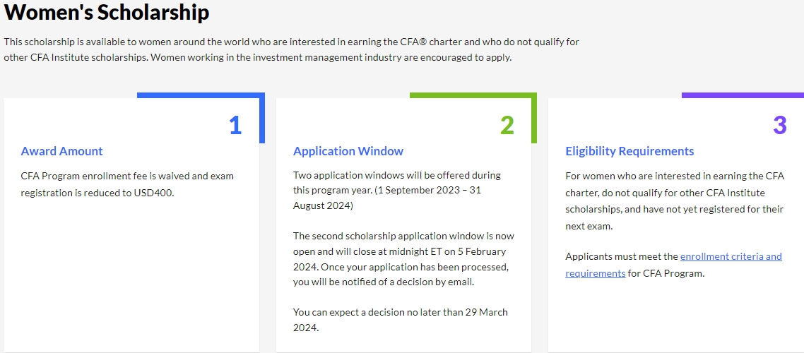 步骤4:点击CFA Program Women's Scholarship,进入具体申请页面
