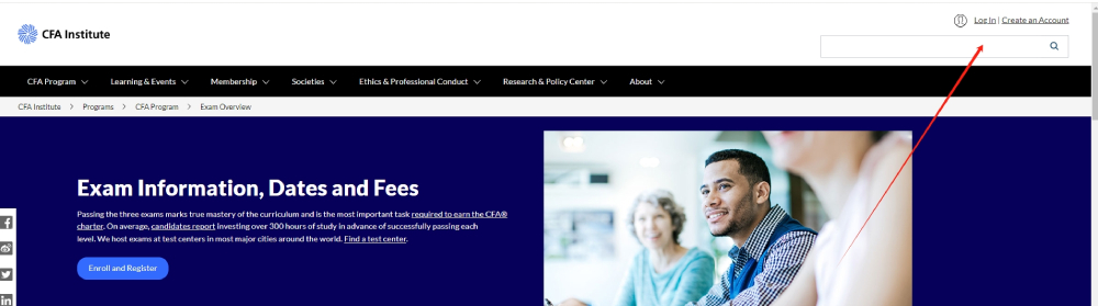 1)进入CFA Institute官网考试报名页面,点击Enroll and Register(新用户需注册账号后登录);
