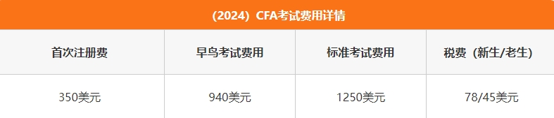 CFA考试报名费用由一次性注册费、考试费和税费三个部分组成,其中一次性注册费只需要在首次报名CFA一级考试时缴纳,补考或报名CFA二级、三级考试则无需缴纳。具体各部分的收费标准如下表: