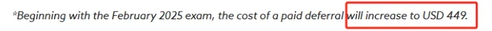 从2025年2月考期开始,付费延期费用从399美元上涨至449美元。
