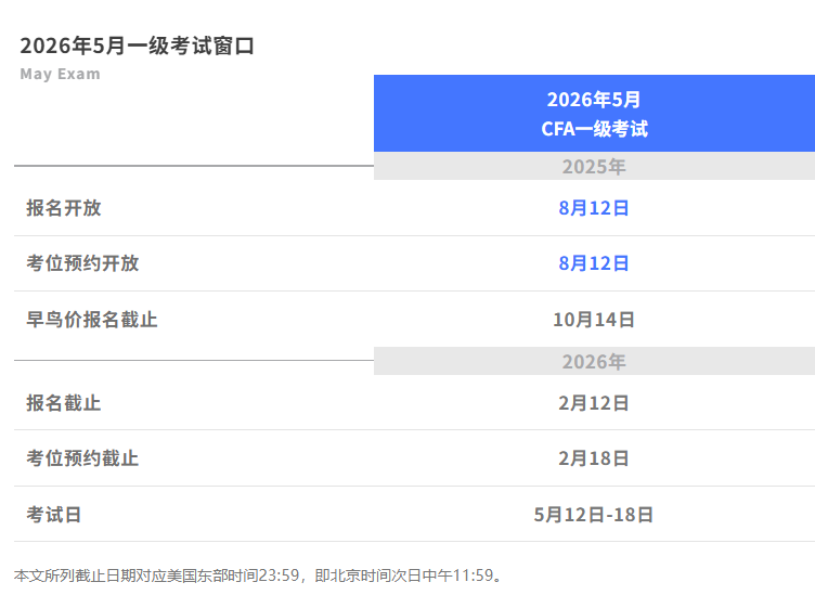 2026年5月CFA考试早鸟价报名已开启,定了!