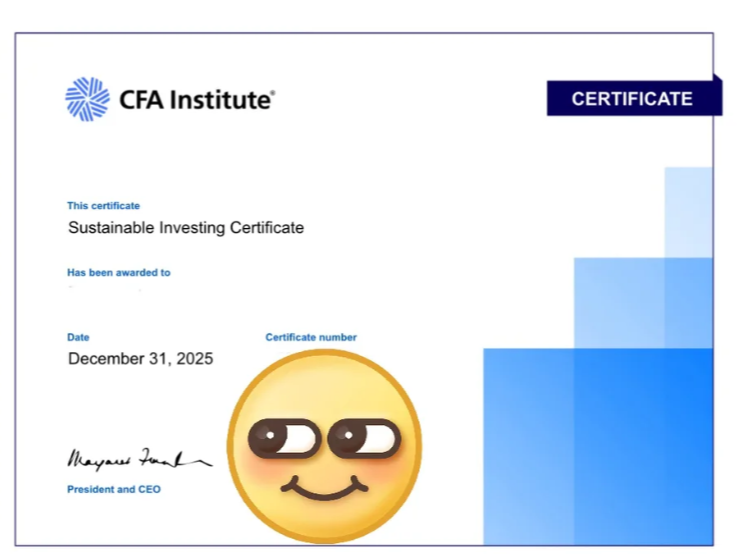 2025考了几个证书,先来分享最后一门考试获得的证书CFA sustainable investing certificate(原CFA ESG)备考攻略。相比于考的其他证书,这个可以说是最无痛的备考了。只需要一个月就能够很完善得准备好考试。