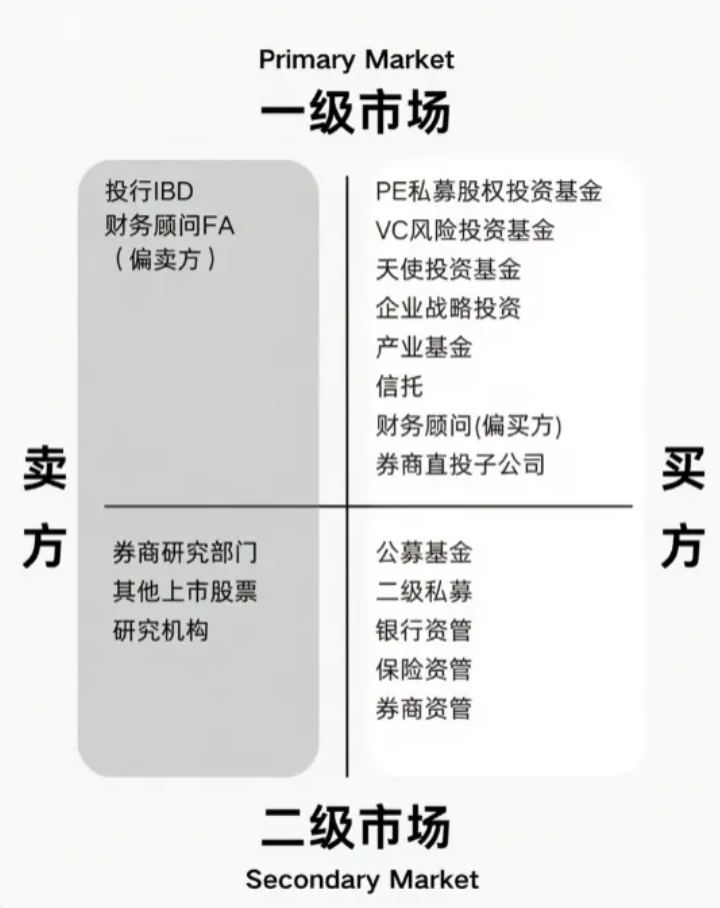 如果你选择投行,那就要负责协助企业设计融资方案、对接资源,这些都属于一级市场业务,服务的是尚未上市的公司。